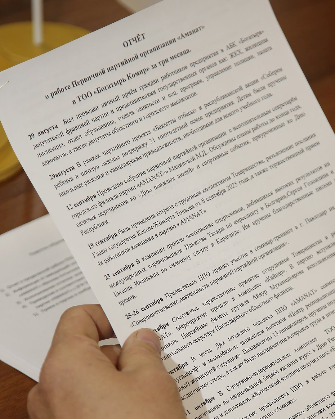 12 қараша күні бас кеңсенің конференц-залында құрылымдық бөлімшелердегі партия ұяшықтары төрағаларының қатысуымен «AMANAT» партиясының «Богатырь Көмір» ЖШС бастауыш партия ұйымының есептік жиыны өтті.