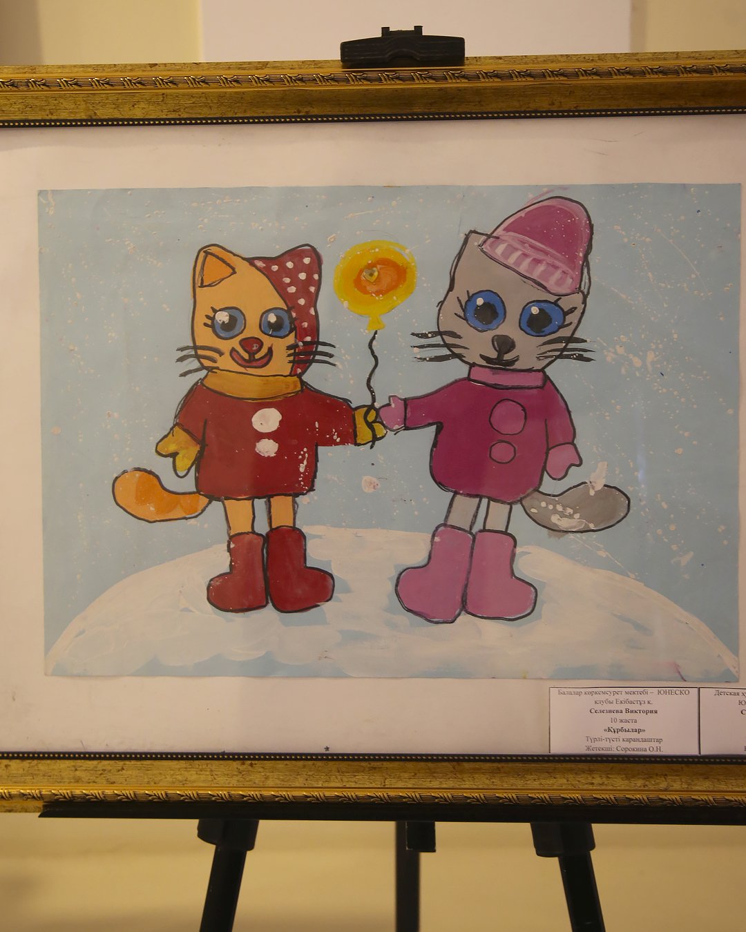 Аталған көрмеге барлығы 23 жұмыс ұсынылды. Экспозицияда Жаңа жыл тақырыбына, туған өлкенің табиғатына арналған картиналармен қатар, балалардың заманауи технологияларға қызығушылығын көрсететін, бүгінде кең танымал роботтар бейнеленген суреттер де бар.